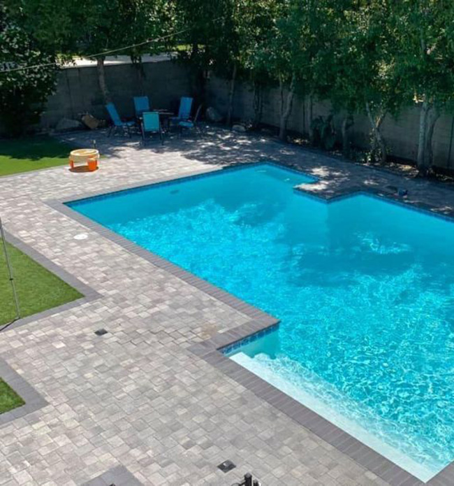 Upgrade your pool space with robust and elegant pool decks, meticulously crafted using top manufacturers' pavers for optimal safety and visual appeal.